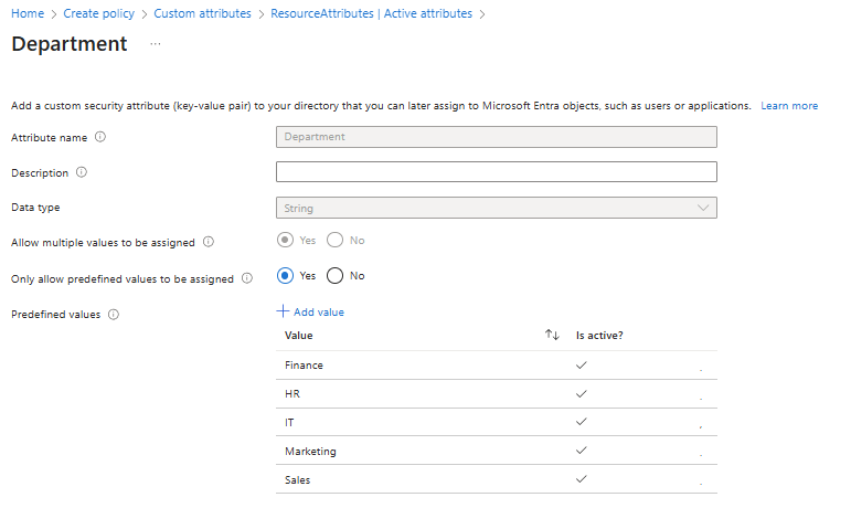 本例では、ResourceAttributes属性セットのDepartment属性がITのリソースをポリシーから除外しています。