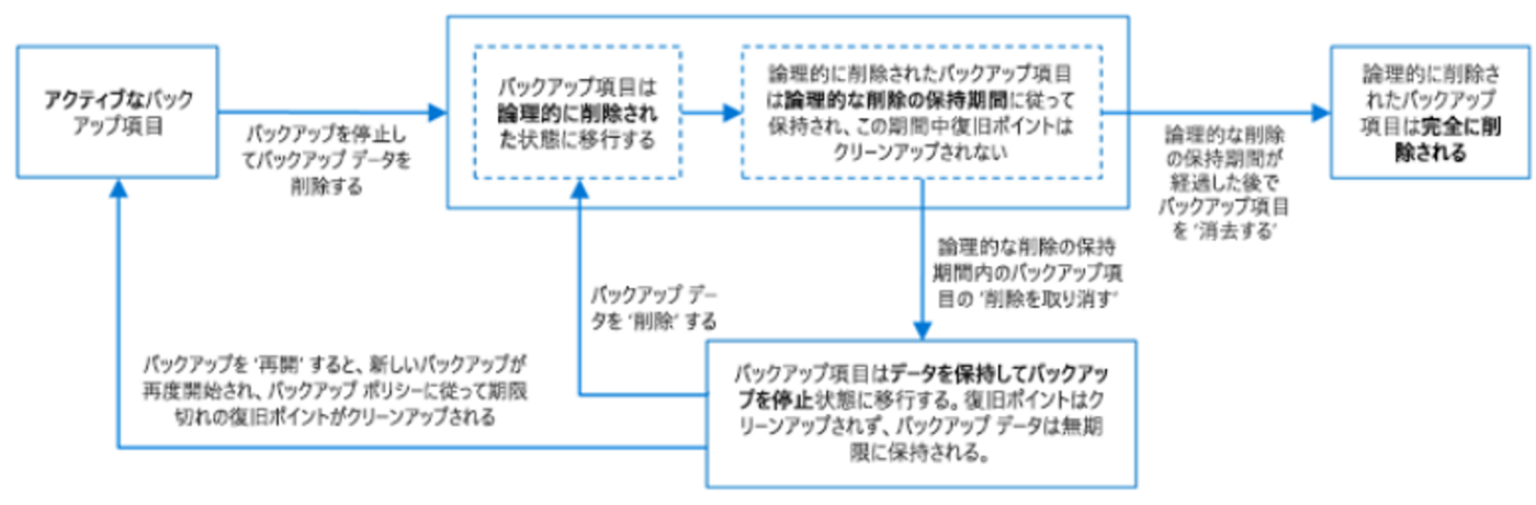 バックアップアイテムを削除しても、一定期間(既定で14日間)復元可能な状態で保持する機能。既定では 14 日間に設定され、最大 180 日間に延長できます。
