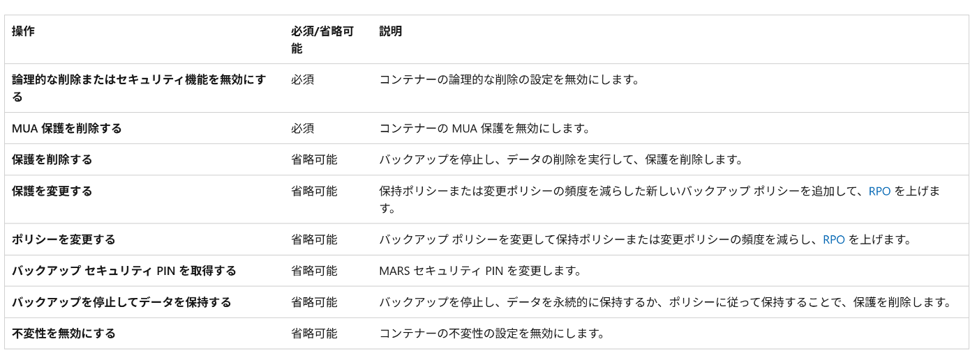 そのため、Azure Backup のランサムウェア対策としては、ポータル上からの操作を制限することが有効であり、不変コンテナーを有効にし、バックアップ データの削除や保持期間の短縮を行わせないようにすることは、ランサムウェア対策として有用です。