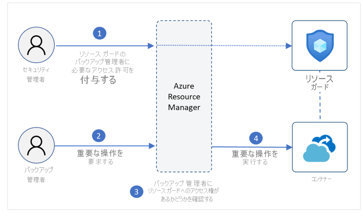 通常、Recovery Services コンテナーやBackup コンテナーの管理者(バックアップ管理者)は、削除やポリシー変更などの操作を単独で実行できます。しかし、これでは権限が悪用された場合にリスクが高いです。