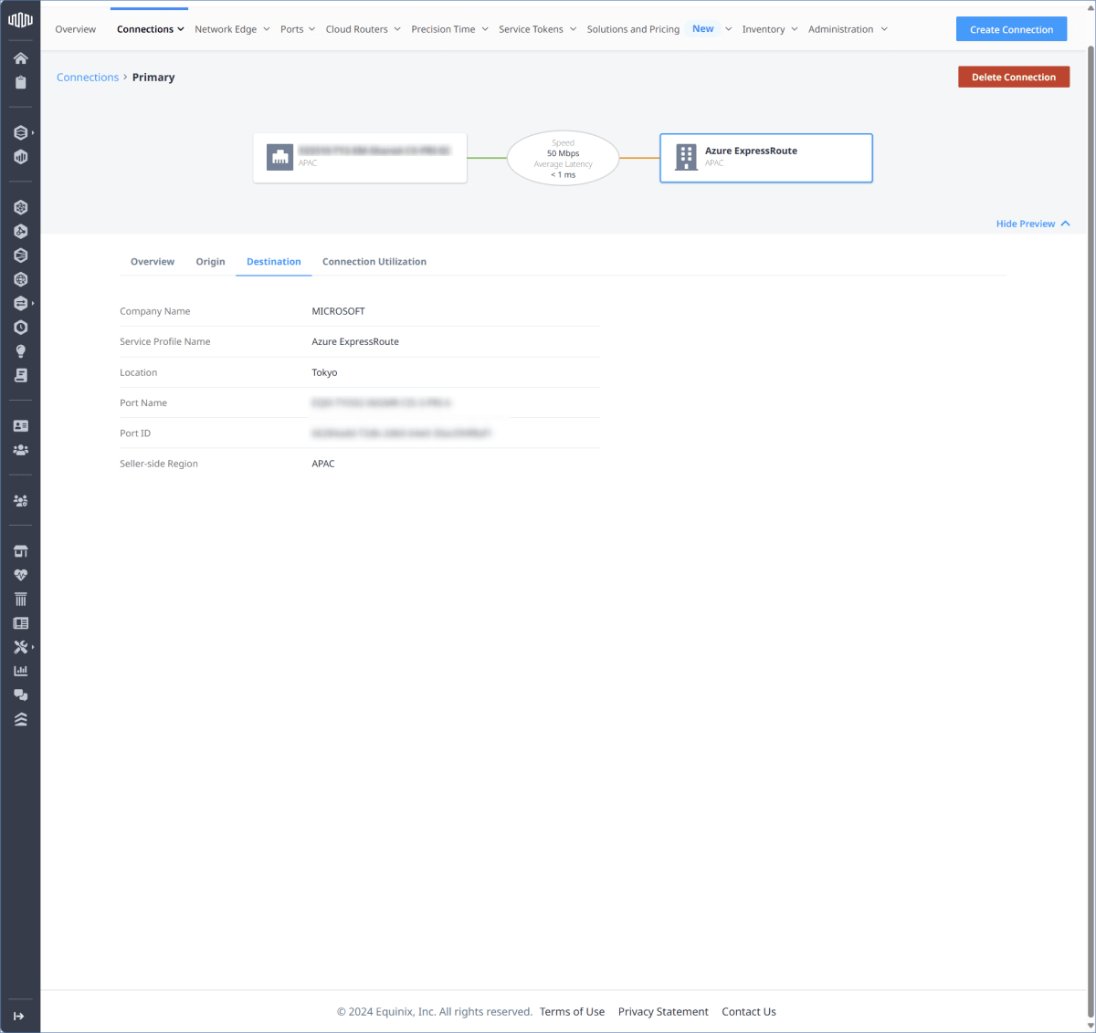 次に、Equinix Fabric のコンソールで ExpressRoute と接続します。