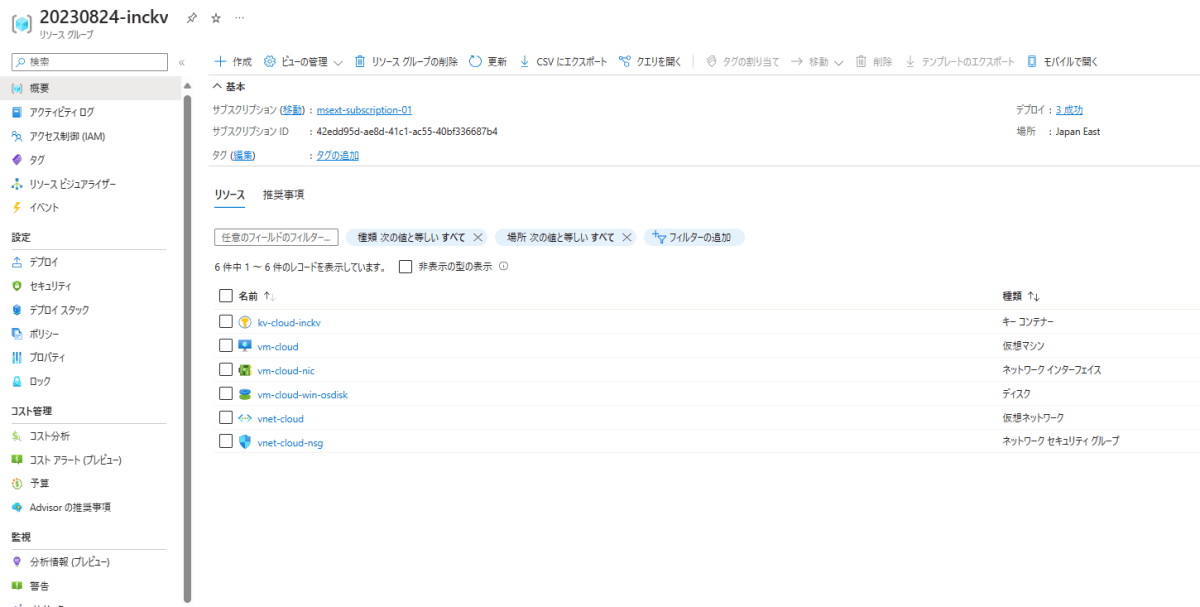 main.bicepに含めてしまってもいいはずという考えから、main.bicepでKey Vaultの作成も実行するパターンで、VSCodeからBicepをデプロイ -