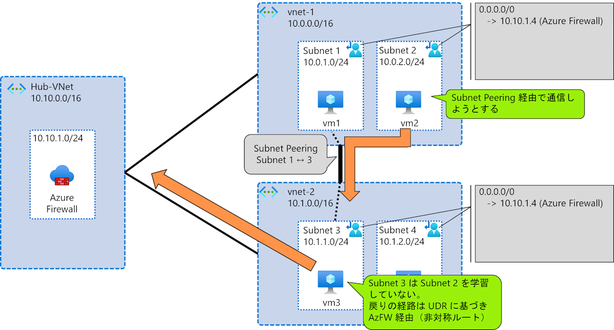 サブネットピアリング を Hub-Spoke 構成で使うときの注意 (UDRを適切に)