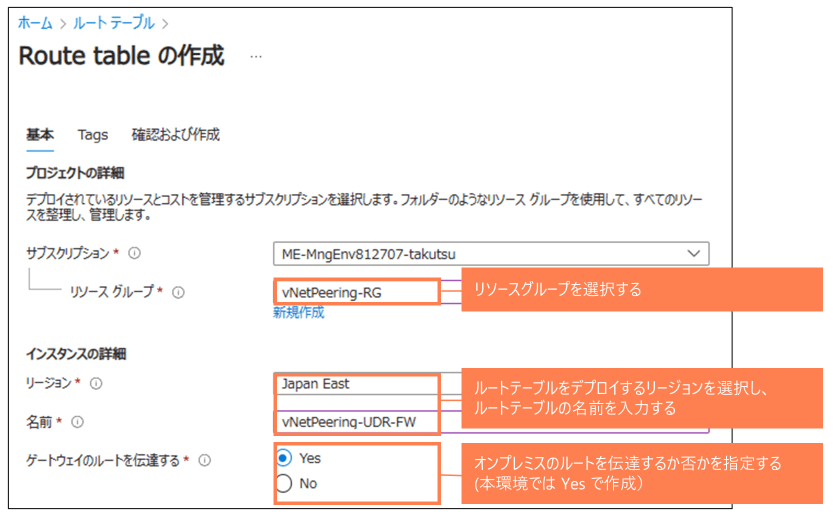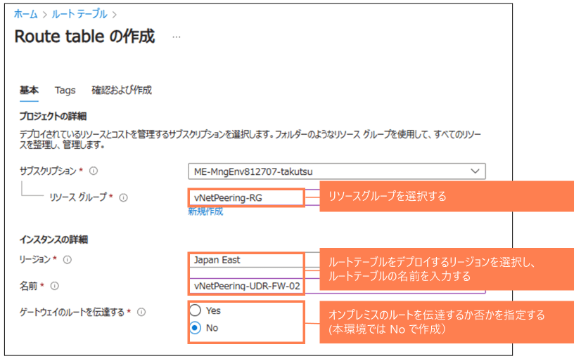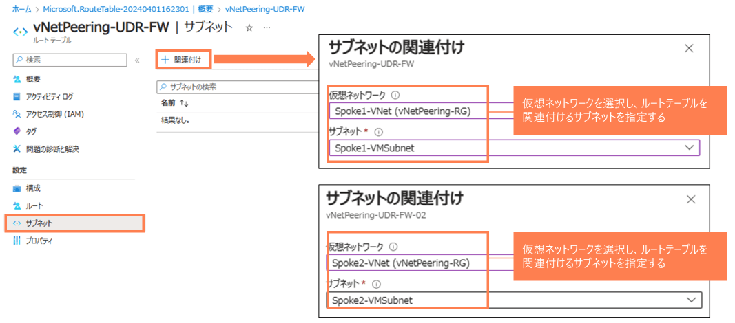2-1. UDR を作成し、デフォルトルートを Azure Firewall に向ける