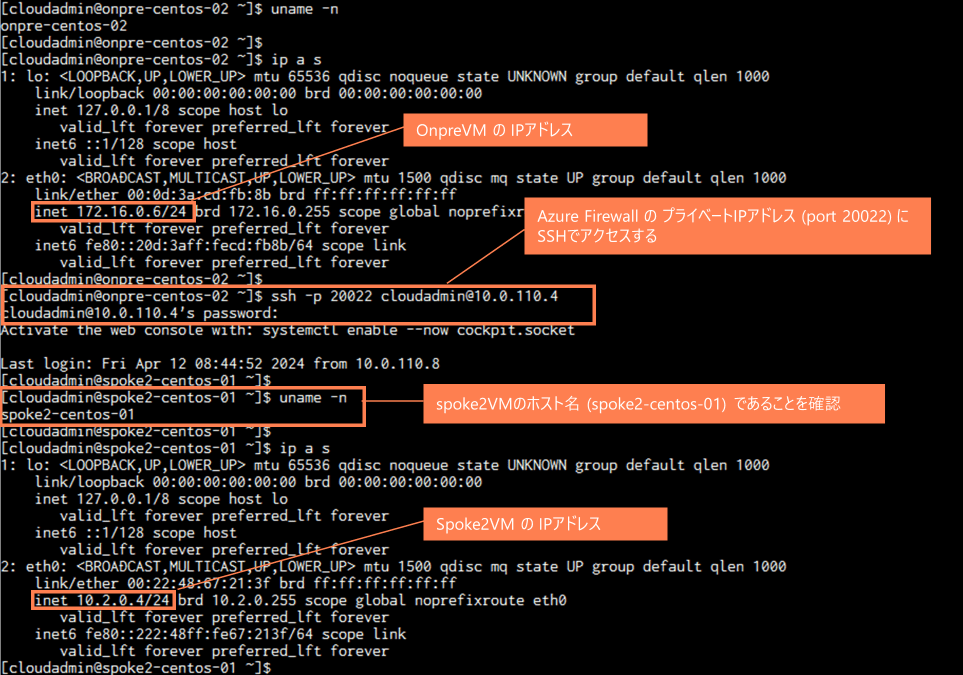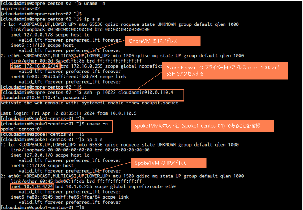 - OnpreVM にて tcpdump を実施する (送信元 IP が Azure Firewall であることを確認)