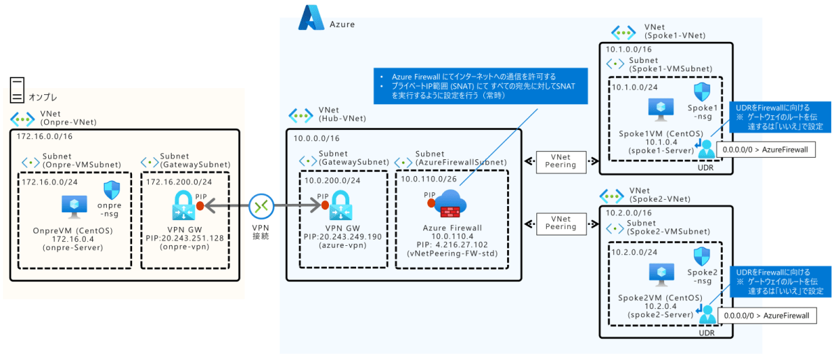 - Azure Firewall にてオンプレミス向けの通信を許可する