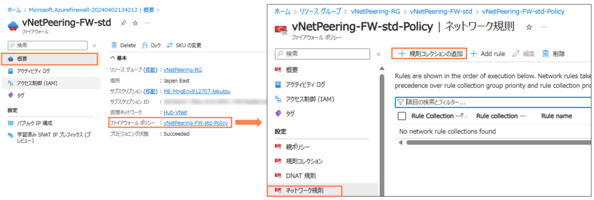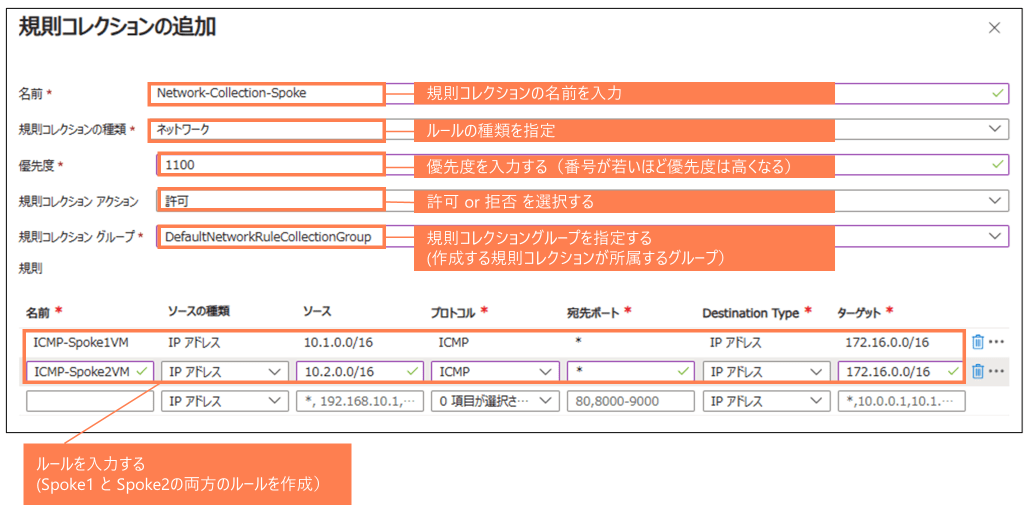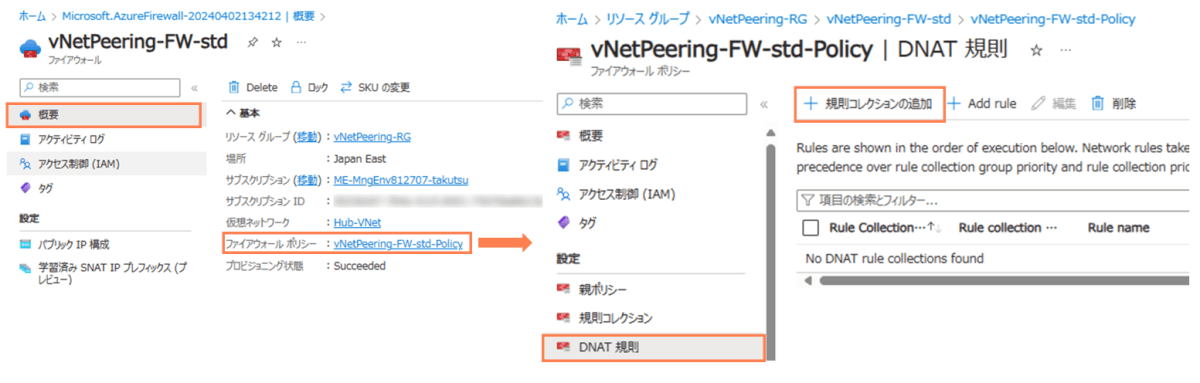 ※違いは、作成する DNAT ルールの宛先を Azure Firewall のプライベートIP にする点のみ