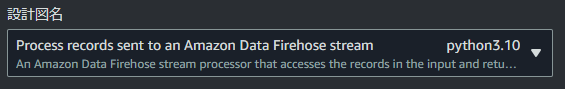 Lambdaは「Process records sent to an Amazon Data Firehose streams」というブループリントを使用します。