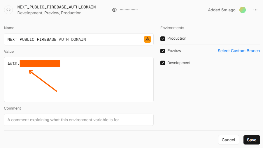 私の場合はNEXT_PUBLIC_FIREBASE_AUTH_DOMAIN