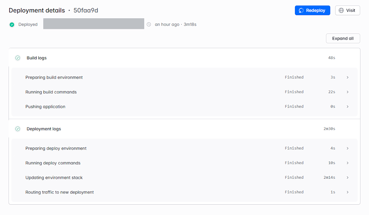 デプロイには少し時間がかかります。しばらく待ちましょう。