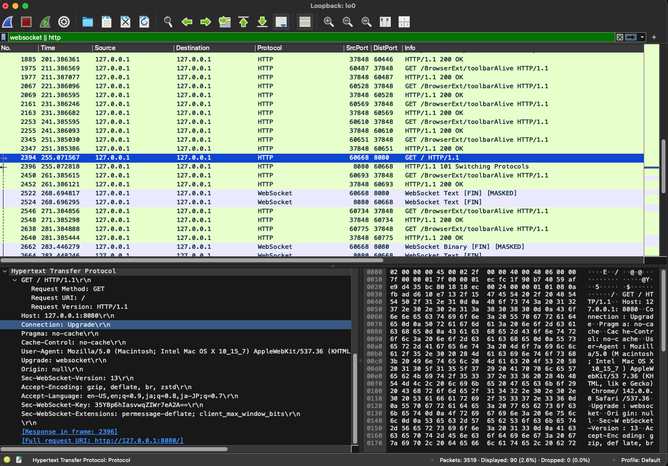 According to Chrome's "Inspect WebSocket messages," it is written as if ping and pong frames can be read, but in reality, they cannot be verified. This issue has also been observed by others. ↩︎