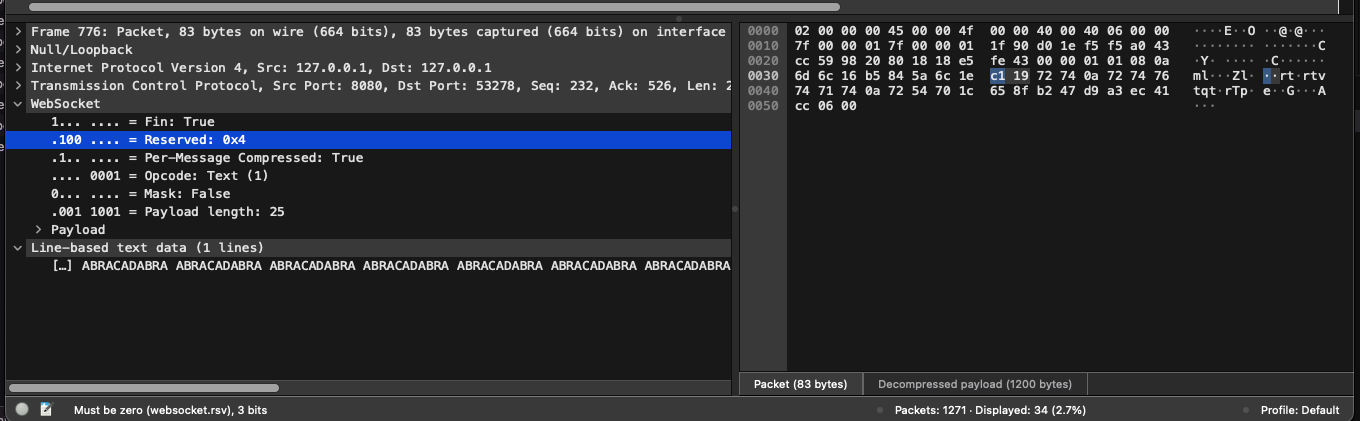 - The data received here is content that has had masking, message compression/decompression, and fragmentation resolved as necessary.
