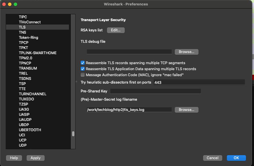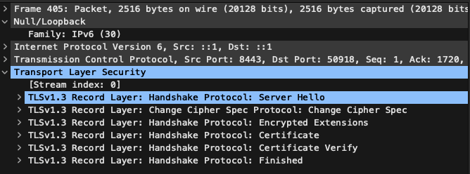 tcp.port == 8443 || udp.port == 8443でフィルタをかける - SSLKEYLOGFILEを環境変数に指定後、
