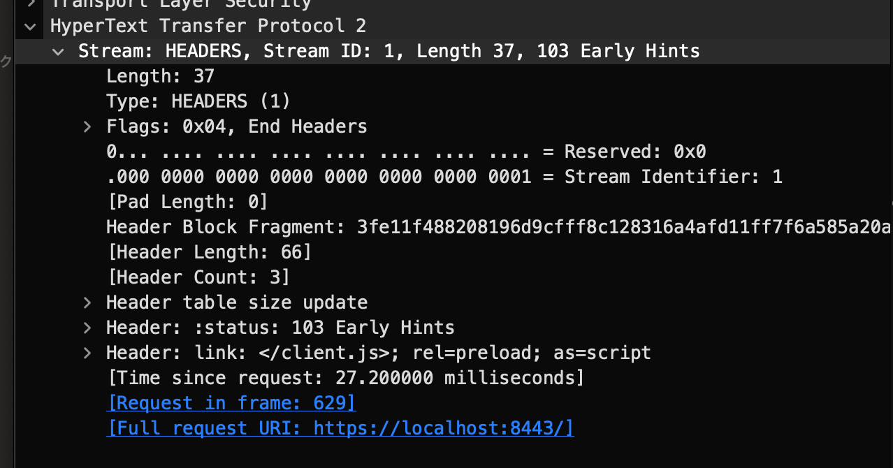 QUICプロトコルをよくみると、先ほどの単純なQUICのクライアント・サーバーの結果には存在していないフレームがいくつか存在します。