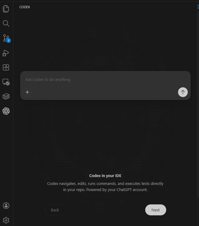 左側にCodexのアイコンが表示されます。