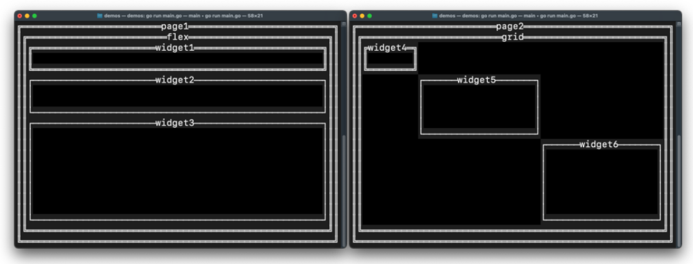 tviewはtcellを元に様々なウィジェットが実装されており、それらを組み合わせてTUIツールを作る事ができるライブラリとなります。