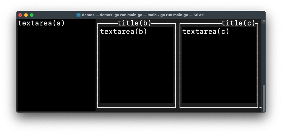 また、Write関数によりTextViewは、io.Writerインタフェースを満たす構造体となっているため、io.Pipeやfmt.Fprint等により、テキストエリアに書き込む事ができます。
