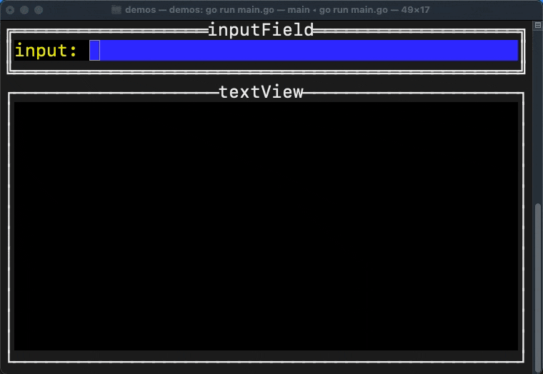このような場合、重い処理を別のgoroutineで処理させる事により、inputFieldでスムーズにキー入力を行えるようになりますが、mainのgoroutine以外でtviewの関数を呼び出す場合、競合状態となる可能性があります。