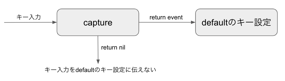defaultのキー設定はcapture関数の戻り値を元に実行されます。