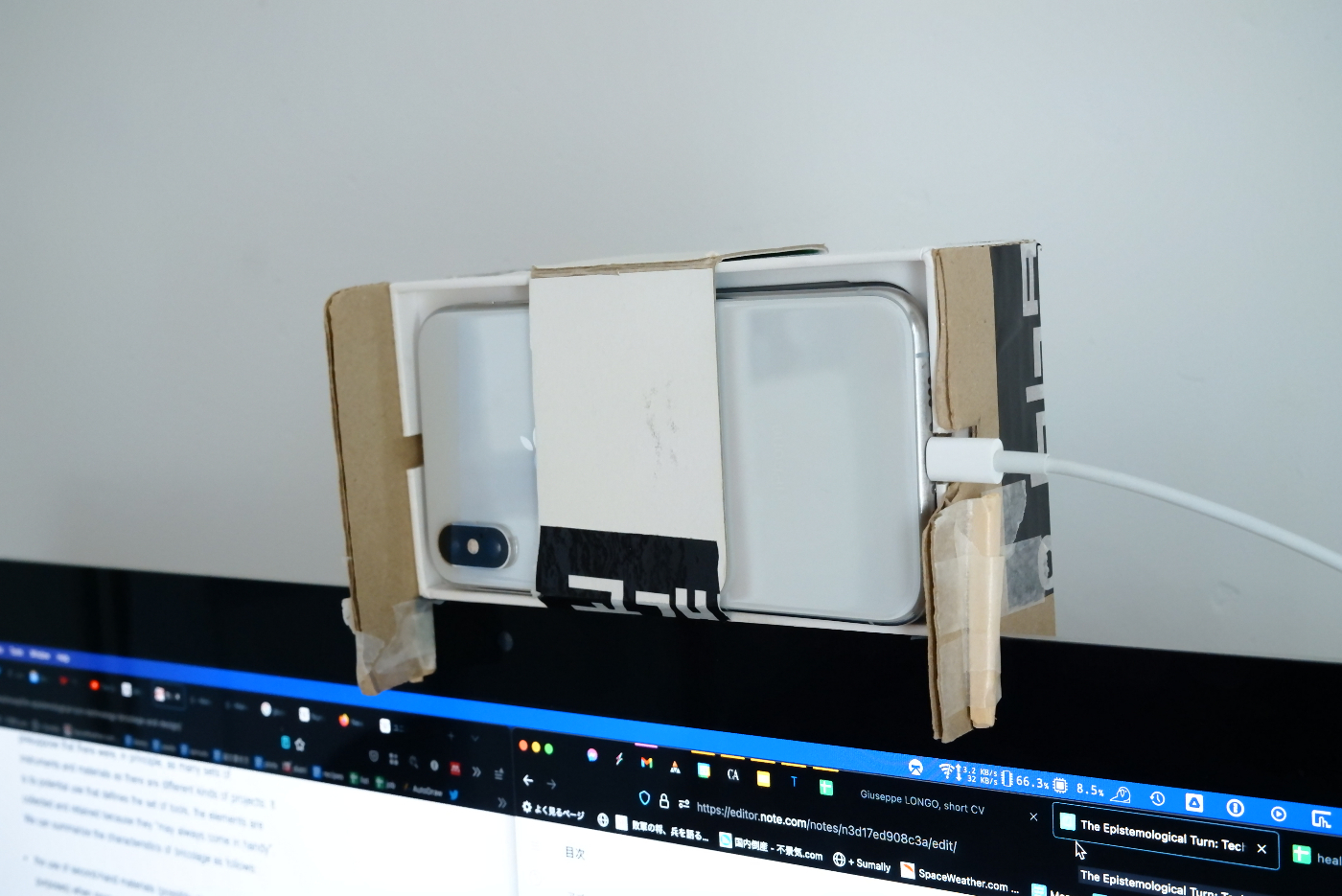 松井実 (2020)「ウェブカムとしてiPhoneを使うためにiMac上に置くホルダー」