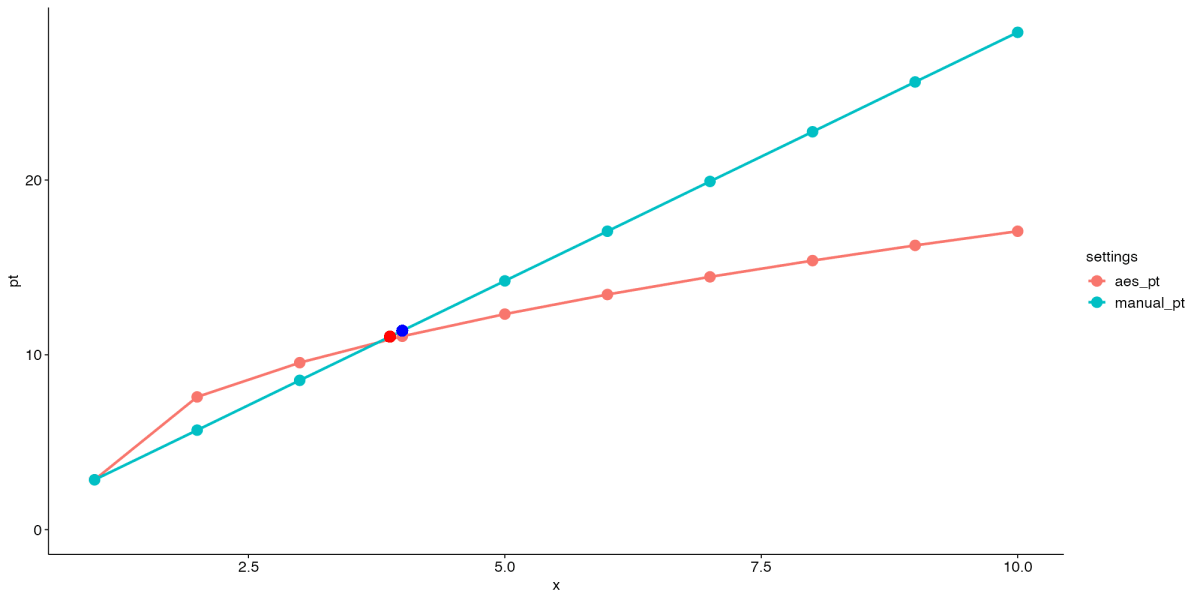 geom_point(x = 4, y = 11.38, colour = "blue") +