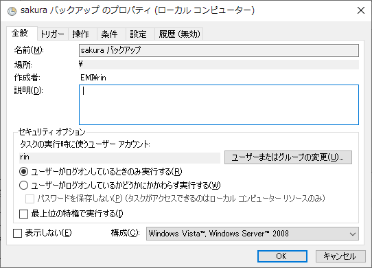 これを Windows 10 のタスクスケジューラに登録します。