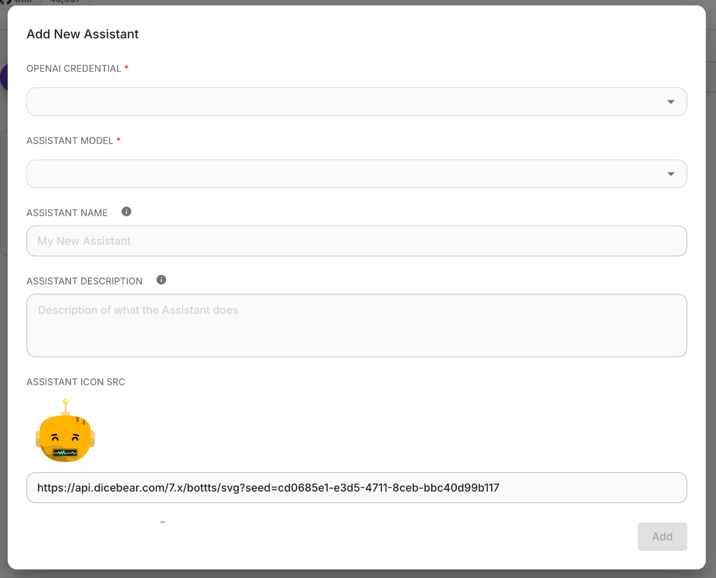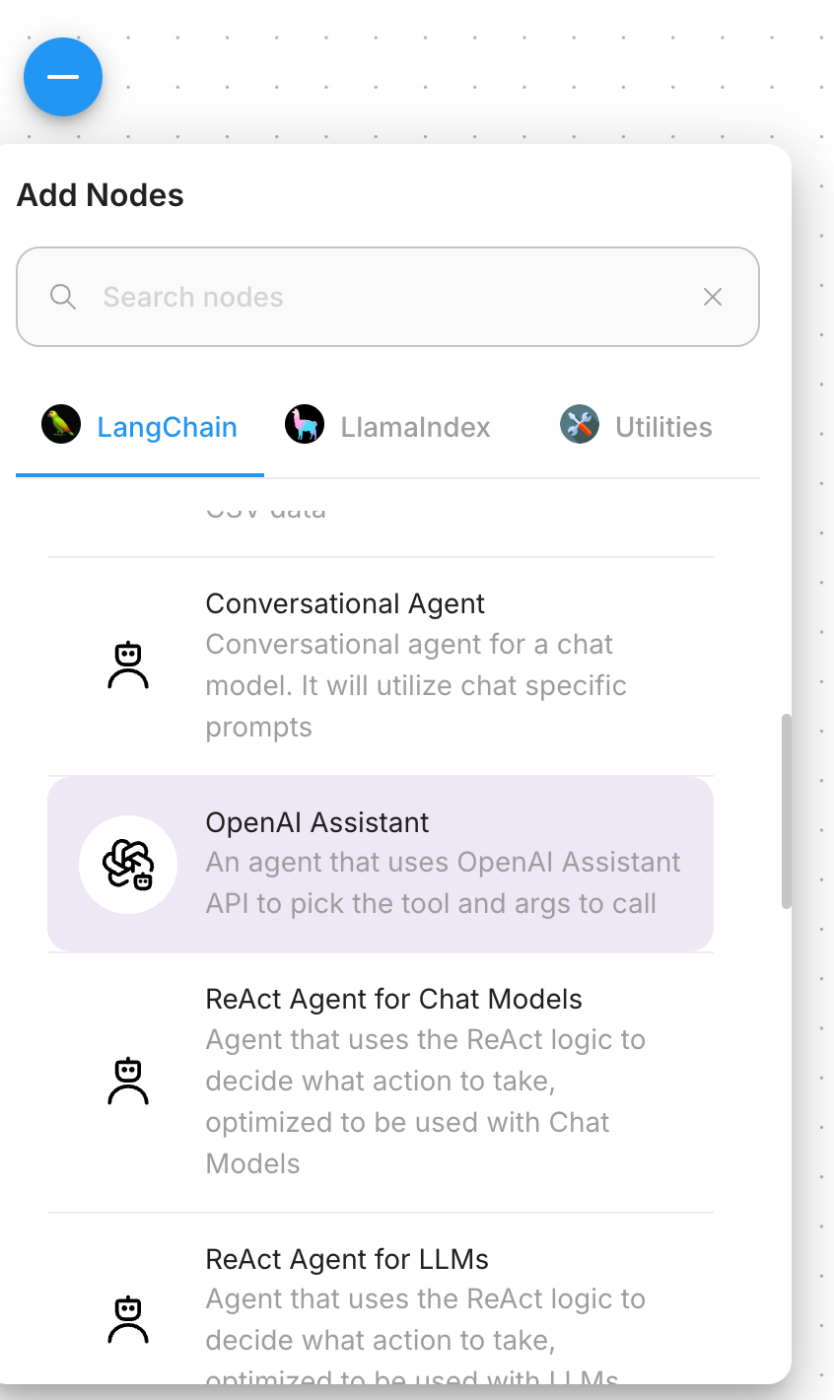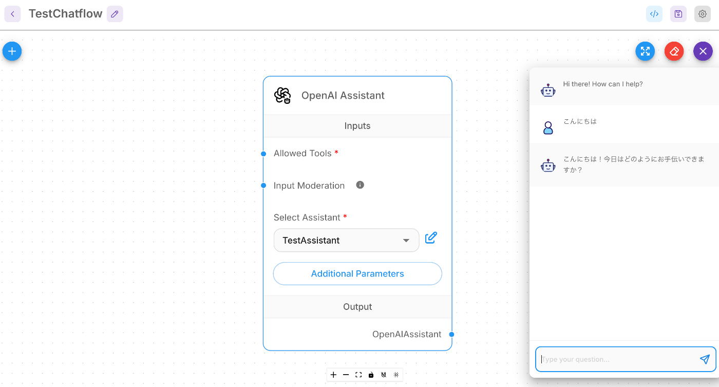 今回は先ほど設定したOpenAIのAssistantを利用する形にしました。