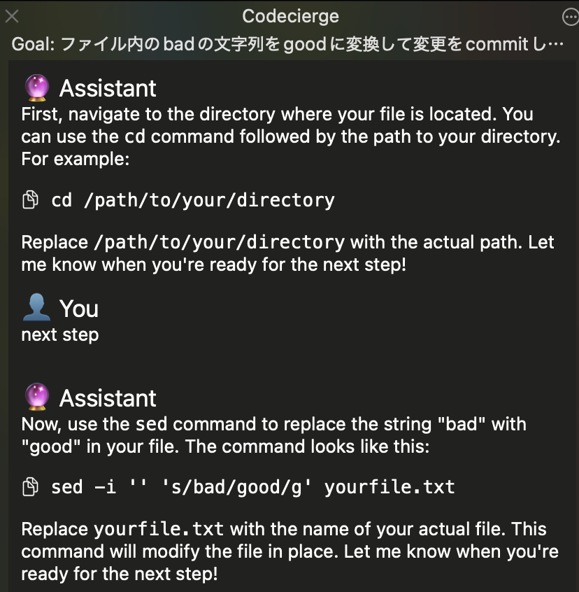 - AIと対話しながらコマンドを生成する(AIアシスタント機能「Codecierge」)
