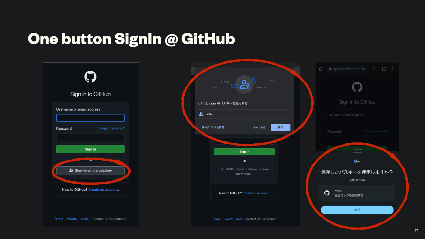 もしパスキーに興味を持たれた方がいましたら、今回の発表で紹介したパスキーが導入されているサービスを実際に利用して、その動作を自身で体験してみてください。