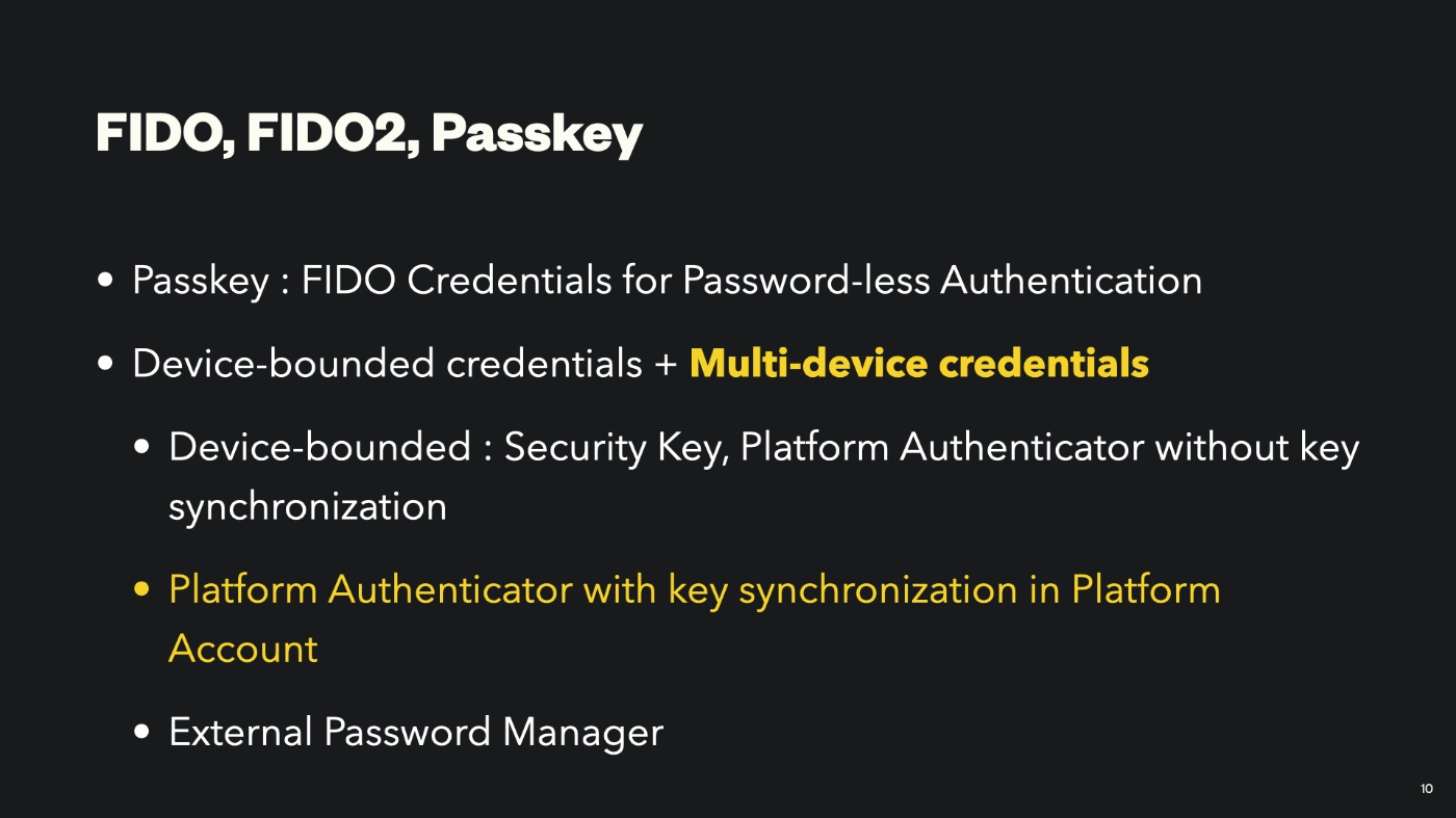 しかし、Apple、Google、Microsoftがパスキーに対応すると発表したタイミングで、複数のデバイス間で同期されるクレデンシャルというのが出てきました。