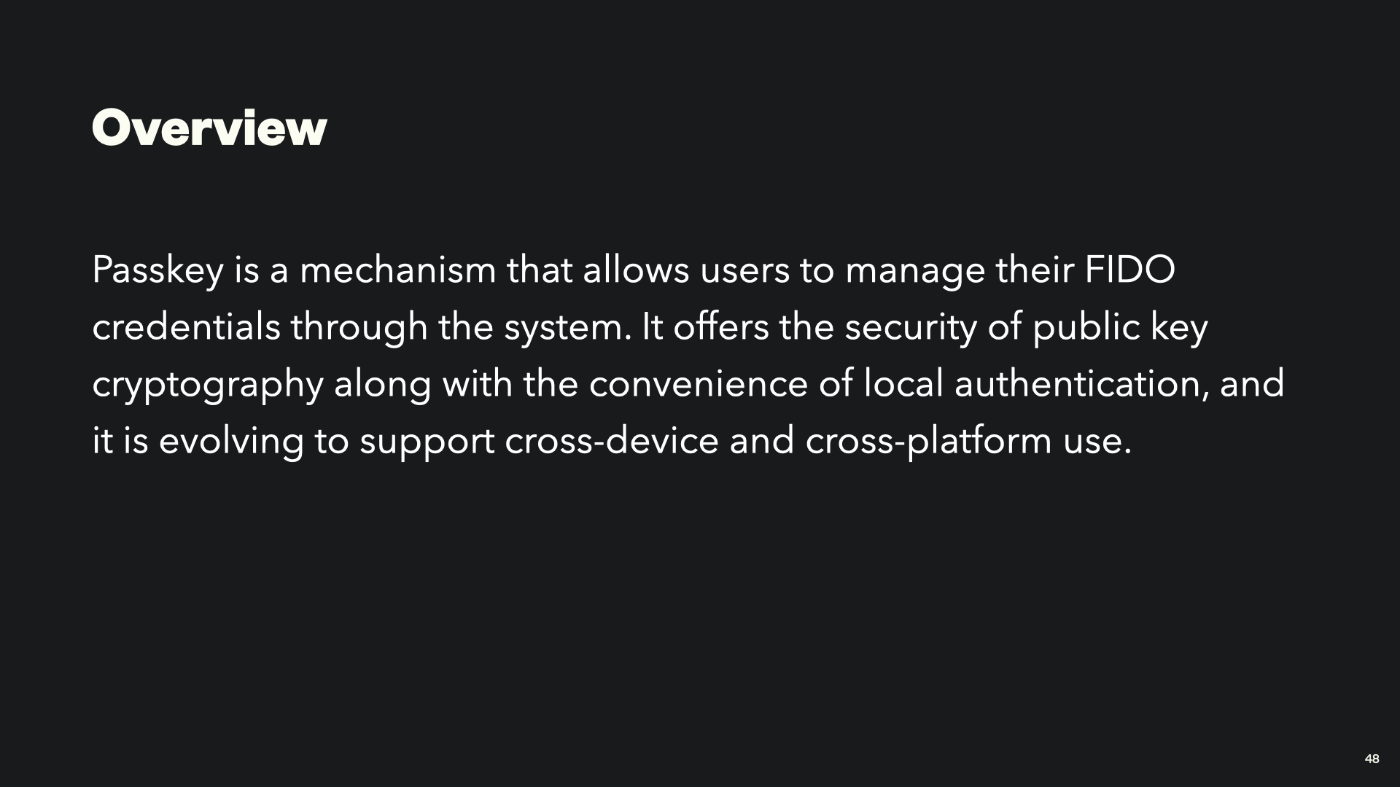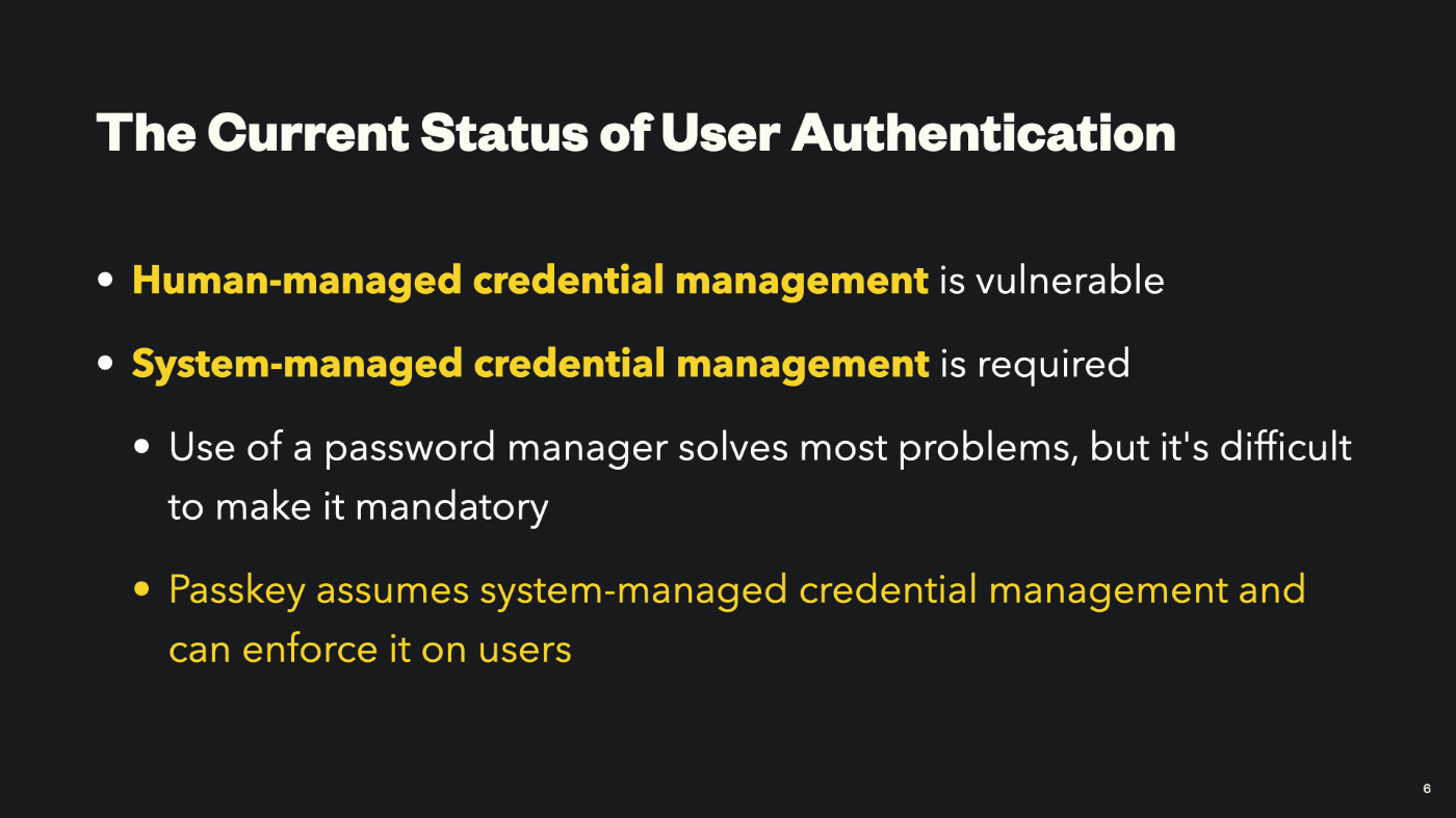 パスキーは、システムによるクレデンシャル管理をユーザーに強制する仕組みとして設計されています。安全性と利便性の両立を目指し、クロスデバイスおよびクロスプラットフォームの使用環境も考慮されています。