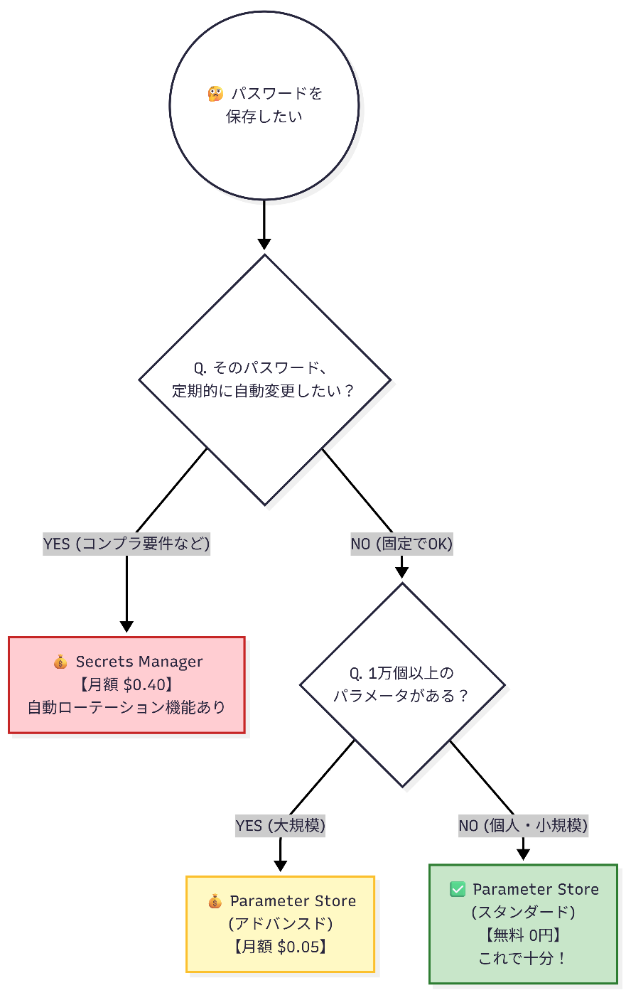 You might think, "Only 60 yen?" However, as the number of secrets increases—database passwords, API keys, staging environment credentials—it can add up to several thousand yen per year. If you aren't using "automatic password rotation," that's money you don't need to spend.
