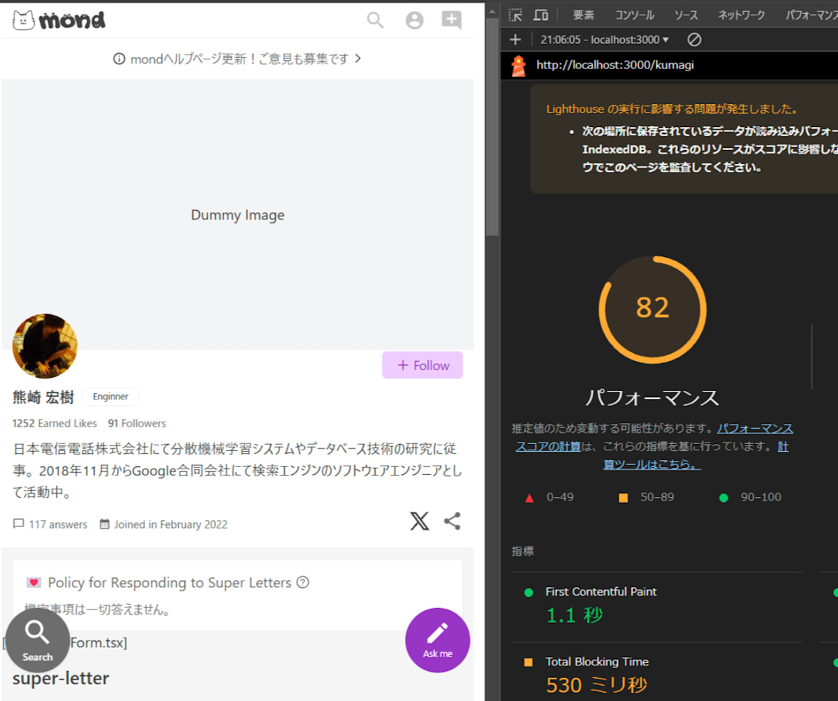 On the other hand, I feel that precisely because I lacked domain knowledge, I was able to face the DevTools metrics calmly. When you read the code, you might sometimes fail by looking at numbers that aren't actually heavy due to assumptions. Since my measurement methods have become more organized within myself, I'd like to formalize this knowledge eventually.