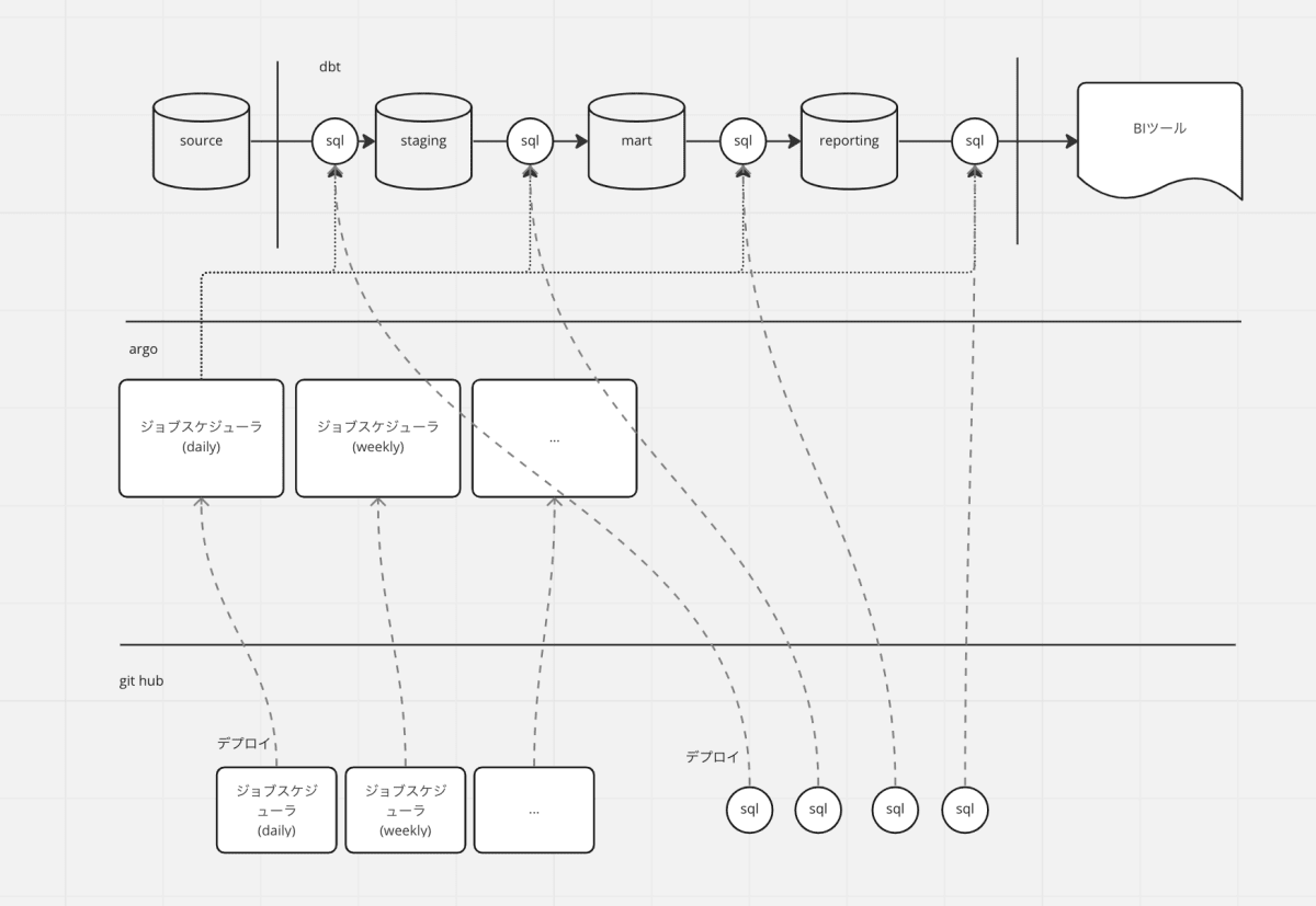 ジョブスケジューラの検討をせずに、クエリがかける人なら本番環境に最新のデータを持ったマートを作れる状態を目指しました。