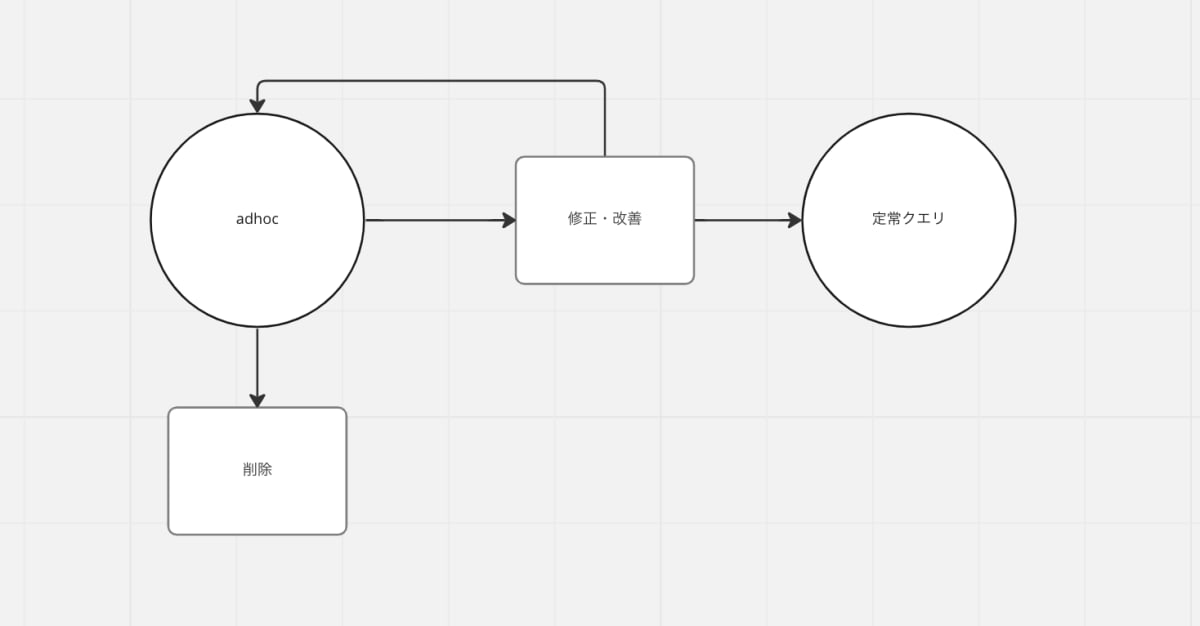 アドホッククエリのリファクタリングはあまり進まなかった。①そもそもアドホックで書いたクエリの50%くらいしか長期で使われていかない or みてる人が数人のニッチなテーブルになっていた。②一度アドホックで出すと、次も近いデリバリー感の要件が飛んできてしまい、リファクタリングの時間が取れなくなってしまった。※クオリティを重視するフェーズにないチームなのか、単に看過してるだけなのかは見定め中。