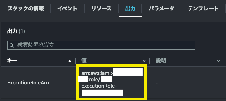 出力にあるARNをコピーしておいてください。