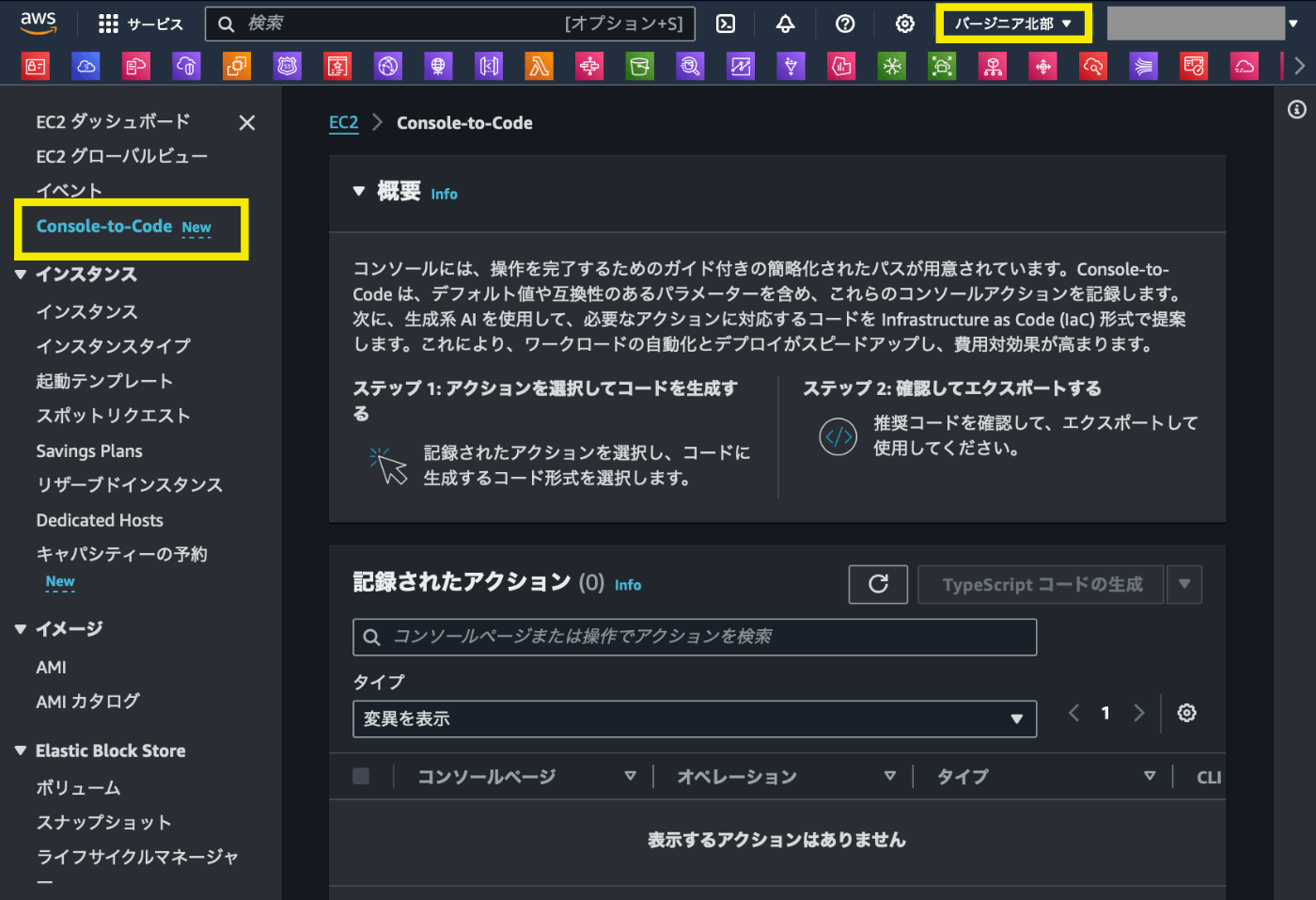 AWS Console-to-Code は、米国東部 (バージニア北部) でプレビューとして利用できます。