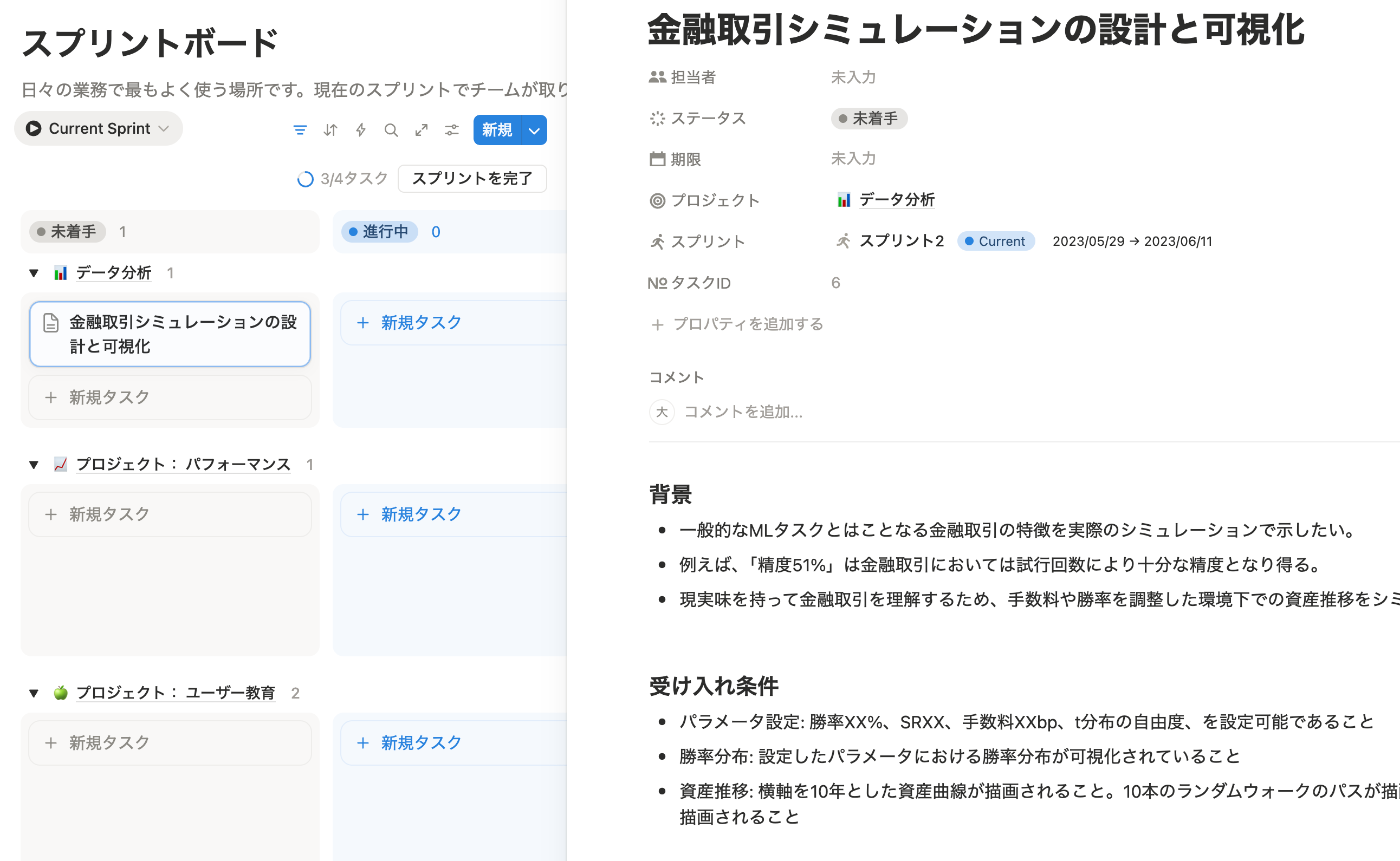 - このNotebookは"金融取引シミュレーションの設計と可視化"というチケットに対応します