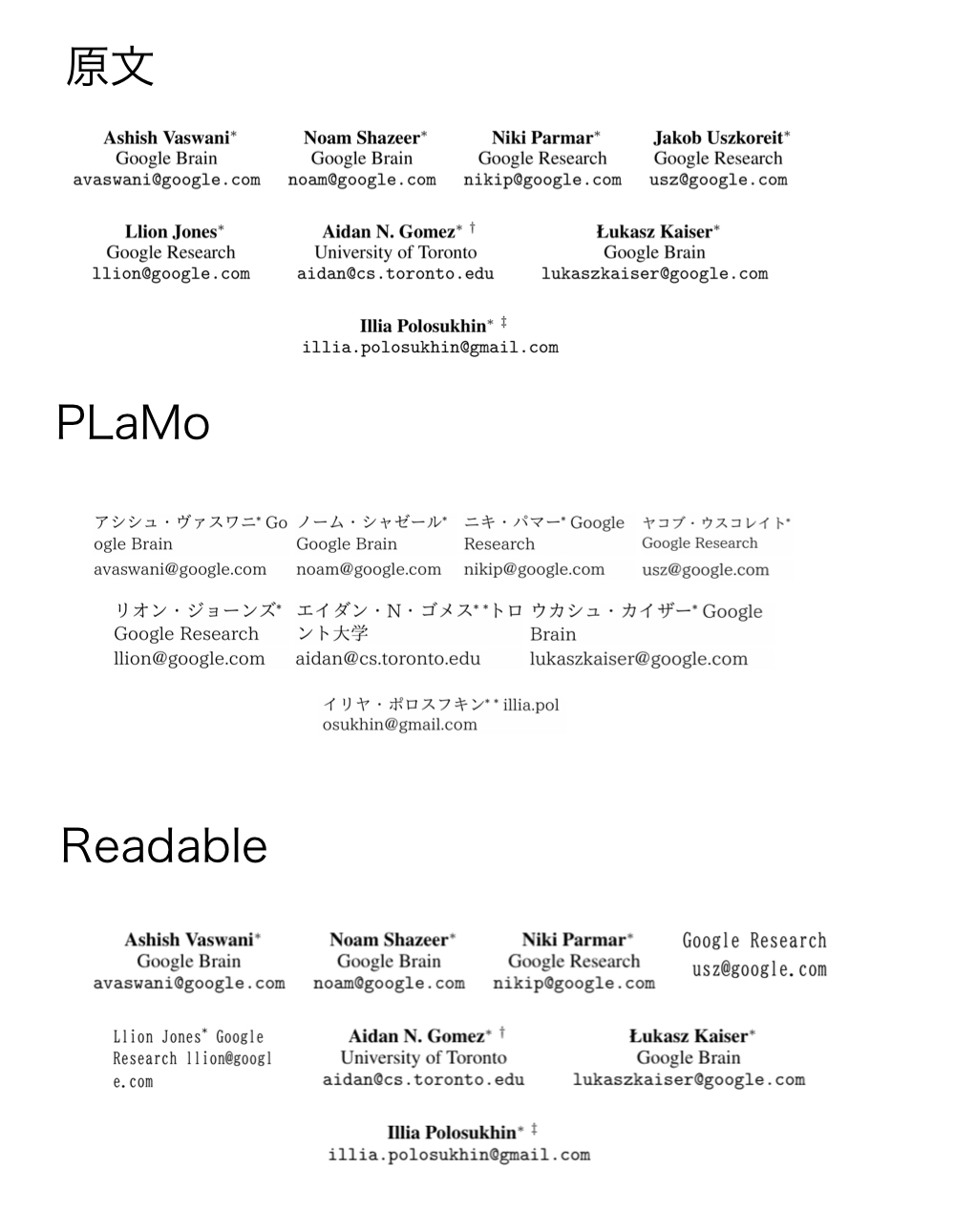 今回は、生成AIで最も有名な論文の一つである「Attention Is All You Need」[1]を元に比較しました。