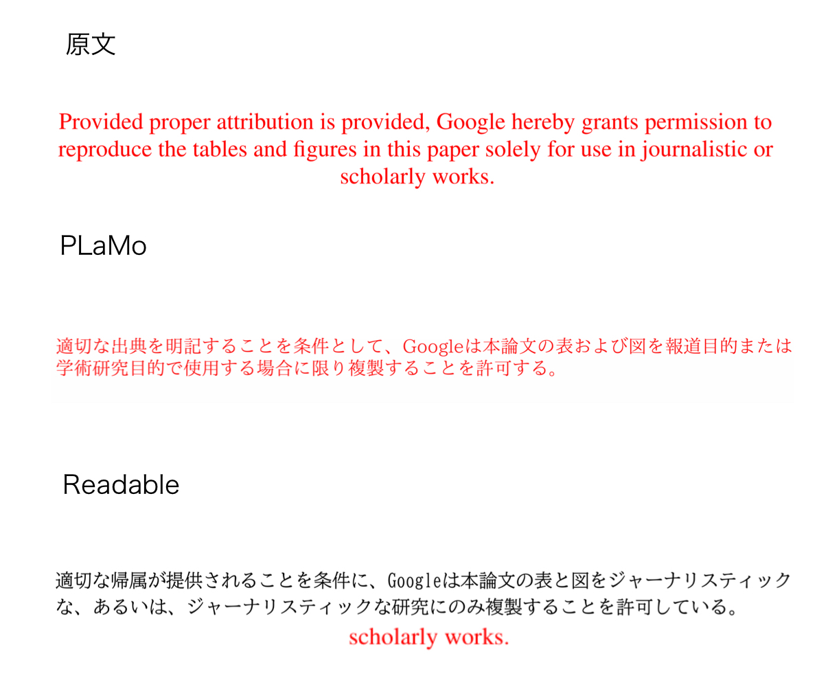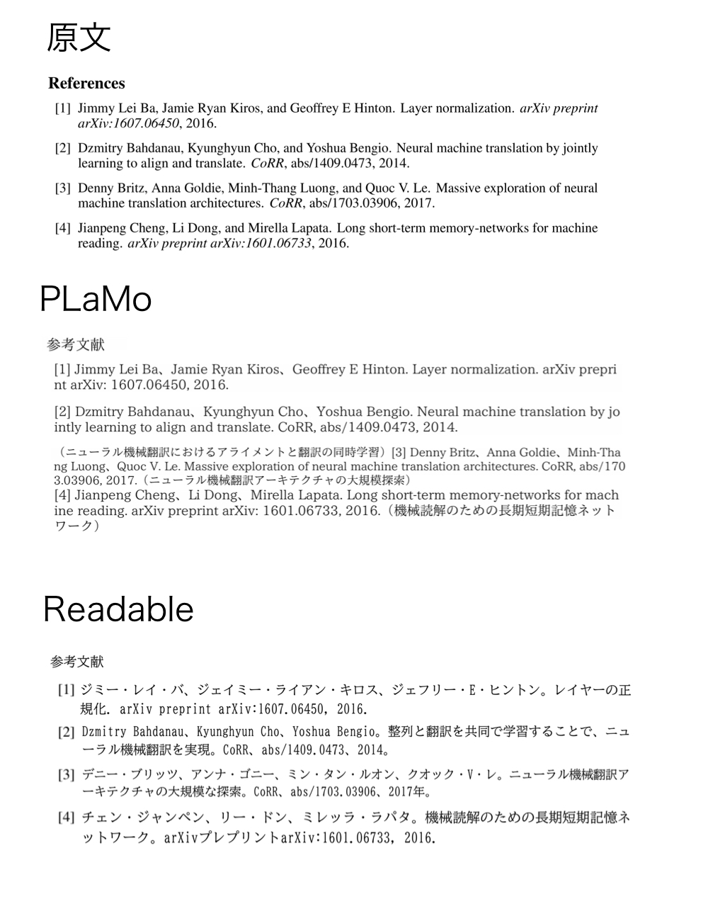 | PLaMo翻訳 (Liteプラン) | Readable (プロスタンダード) | |