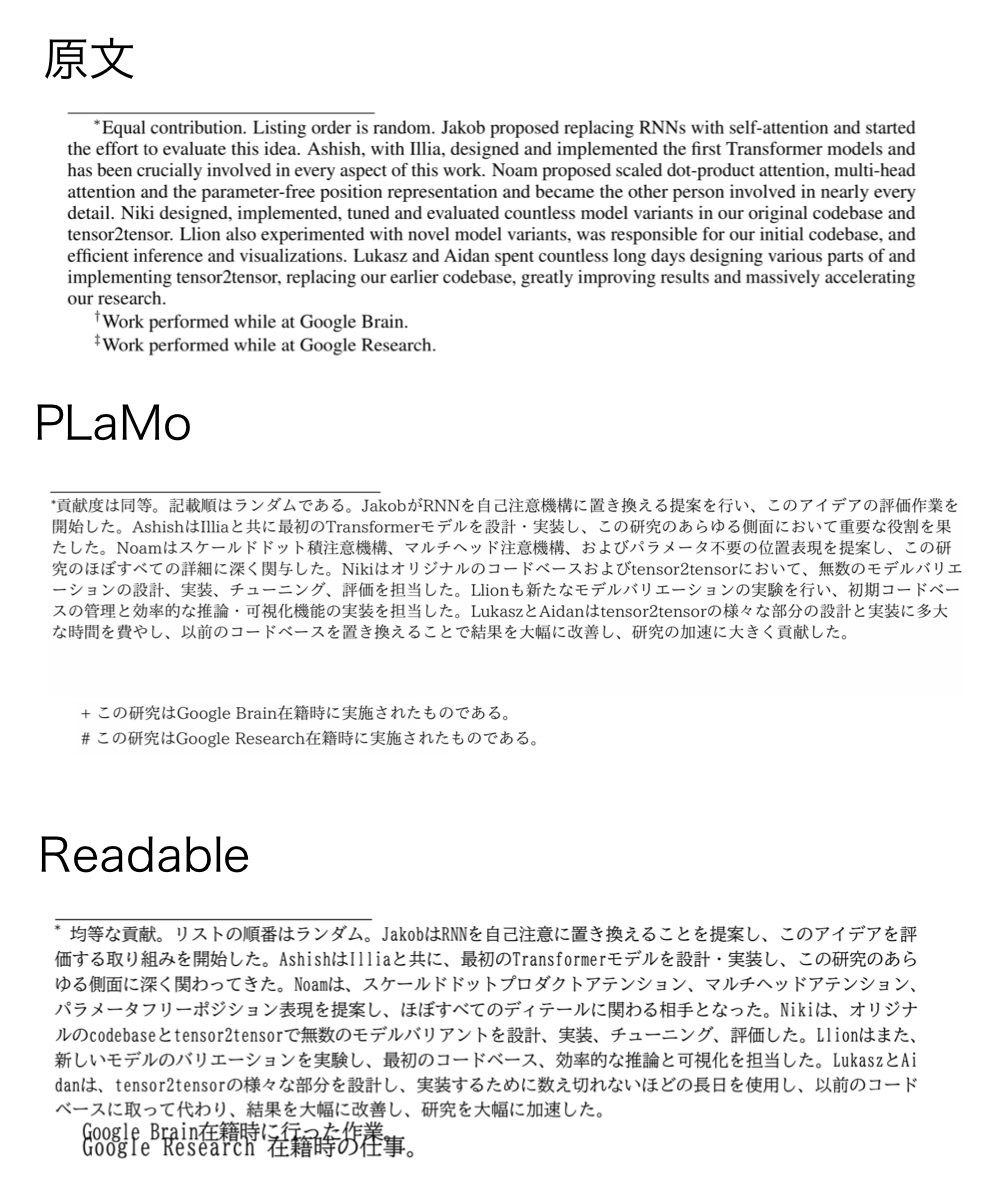 図1:アブストラクトの比較(左:PLaMo 右:Readable)