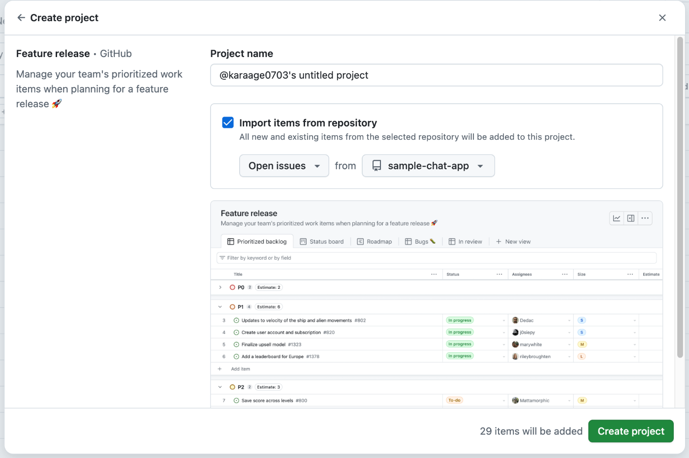 続いてGitHub上でGitHub Projectを作成します。
