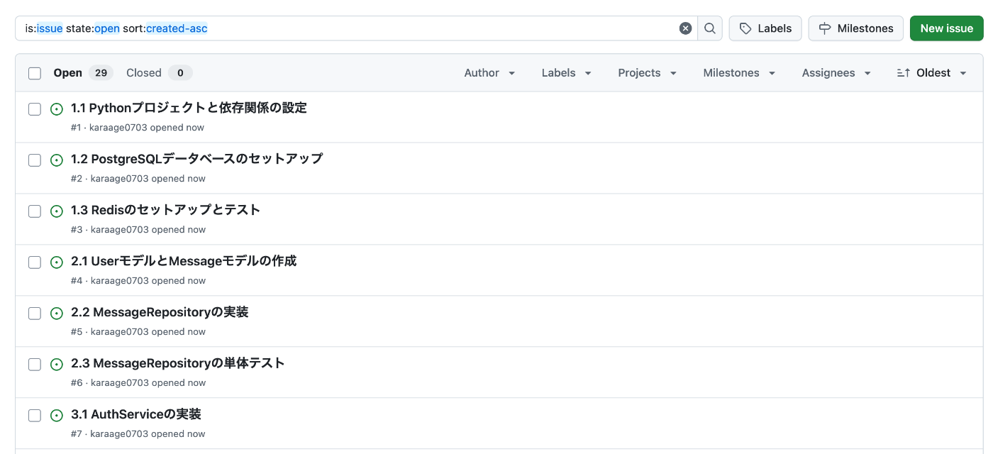 次々とGitHubのissuesにタスクが登録されます。
