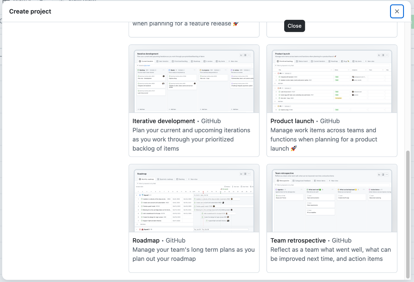 Projectの設定は、ここではRoadmapを選択します(後でも見た目は変更可能です)。