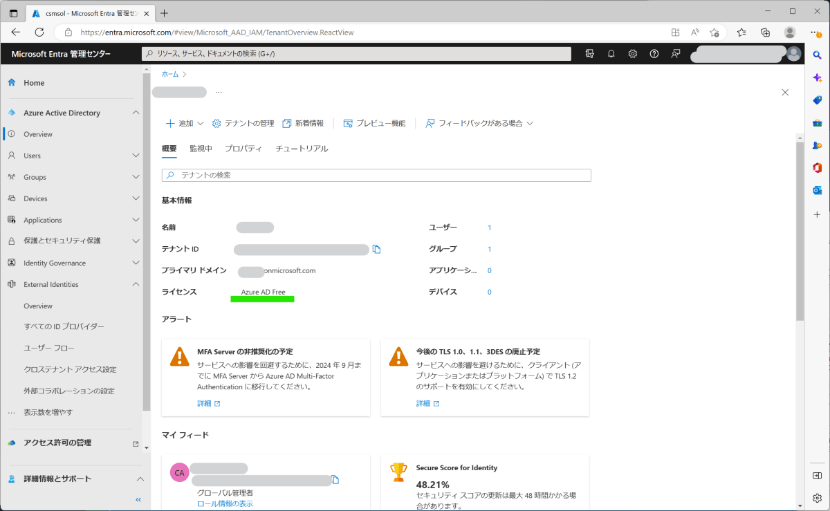 これ出ていますね。記事はAzure AD Free のテナントで書いてますかね?