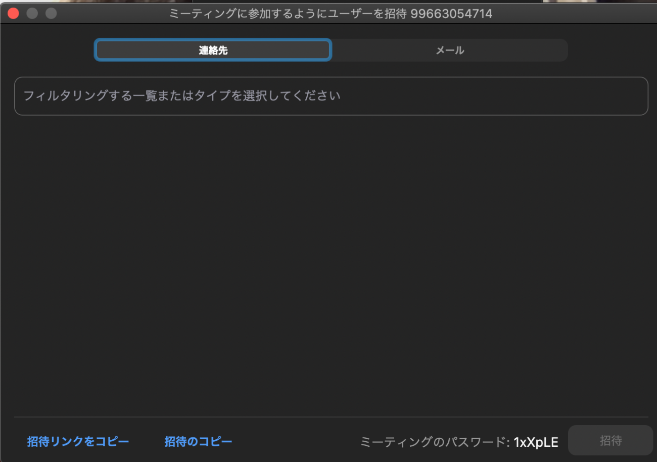 招待のコピーだとパスワードが必要な招待リンクをコピーできます、パスワードは右下の文字列です。