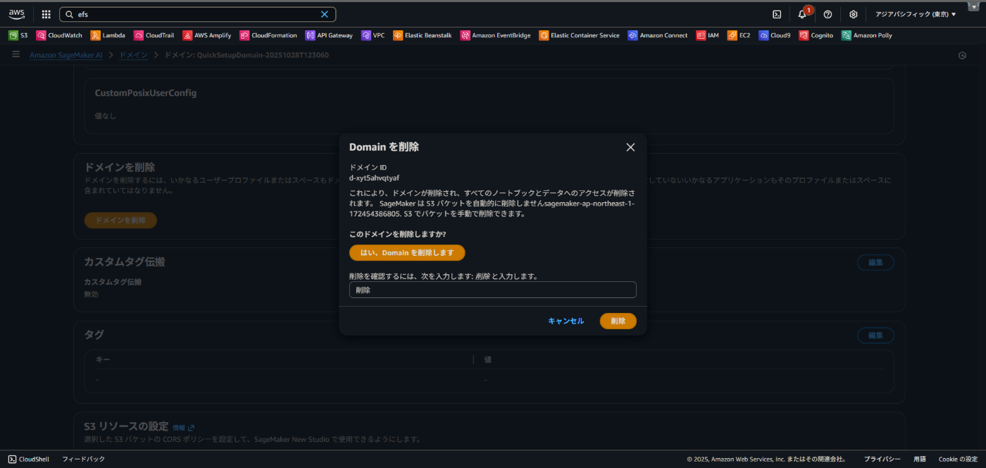 SageMaker ドメイン削除時に EFS も自動削除してみた