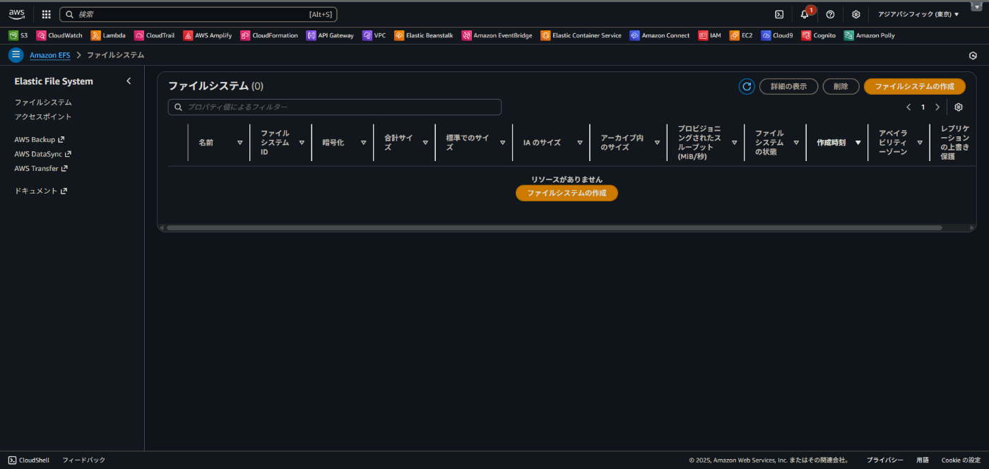 1 分程度経過後に EFS ファイルシステムとセキュリティグループが削除されていれば成功です。