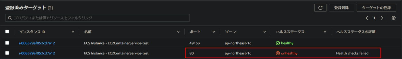 - 解決策として、自動的に追加されたヘルスチェックを手動で登録解除する