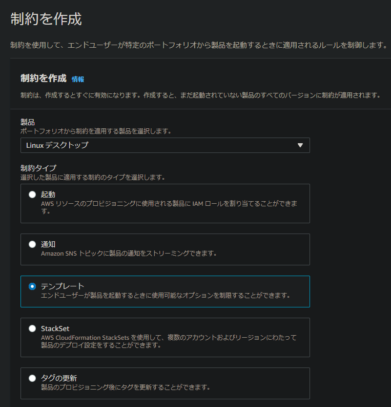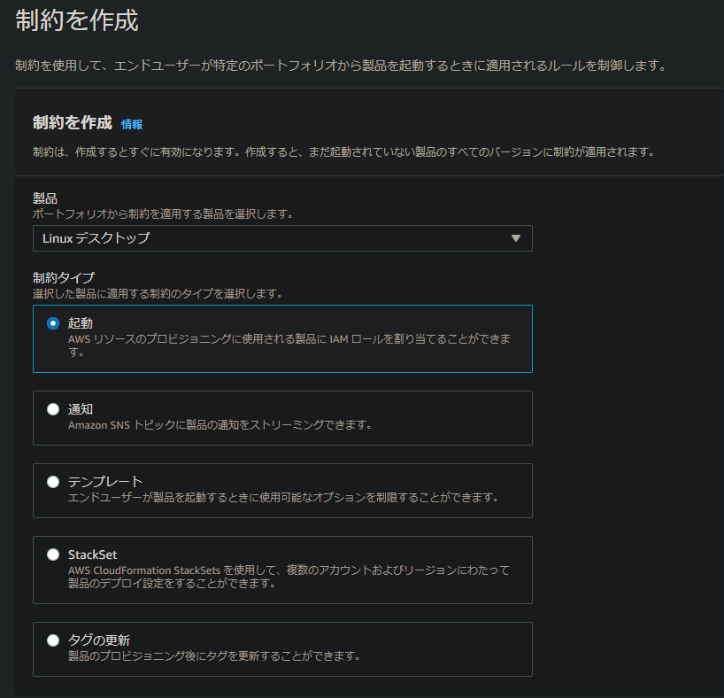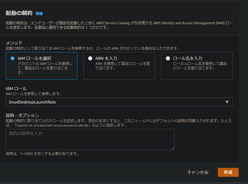 起動制約でエンドユーザーが製品を起動するときにIAMが引き受けるAWS Service Catalog ロールを指定します。